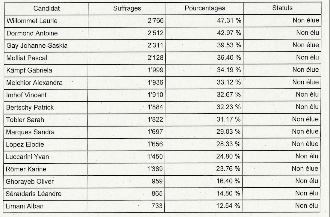 Résultats Conseil communal